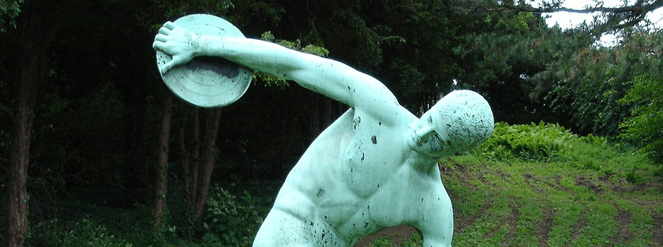Entre los numerosos griegos (pertenecientes a importantes familias) que participaron durante siglos, uno de ellos, un vencedor de todas las pruebas del pentatlón, se mereció una estatua de bronce en su honor. Mirón (480 a.C. – 440 a.C.) fue el autor de este héroe (des)conocido por las copias romanas en mármol, cuya pervivencia en el tiempo fue fijada en una pose como lanzador de disco, de aparente tensión muscular que no tiene tal reflejo en su rostro.
