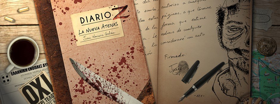 Juan Navarro Galán nos presenta Diario Z: La Nueva Atenas. Se trata del primer libro de la Saga Diarios Z, una novela ucrónica de temática zombi en el que nos invita a leer de una forma diferente, en la que el lector pueda interactuar con la historia más allá de la lectura para convertirla en algo más que un libro. Para ello ha creado un diario totalmente manuscrito y con aspecto envejecido, lleno de ilustraciones, croquis, mapas y apuntes, que invitan al lector a sumergirse de lleno en la trama y a completar la historia por él mismo con: recortes de periódico, pasquines, fotografías, mapas adicionales y mucho más que podrá descargar y personalizar de forma gratuita para incluir dentro del libro y descubrir así todos los secretos que el autor ha escondido.En palabras del autor: “Como amante del género zombie, he querido plasmar en este libro todo aquello que siempre he echado en falta en otros títulos. Quiero que el lector tenga la sensación de haber encontrado un diario manuscrito y usado de verdad, y que al abrirlo, encuentre en su interior una historia creíble, con situaciones realistas y personajes comunes y corrientes».