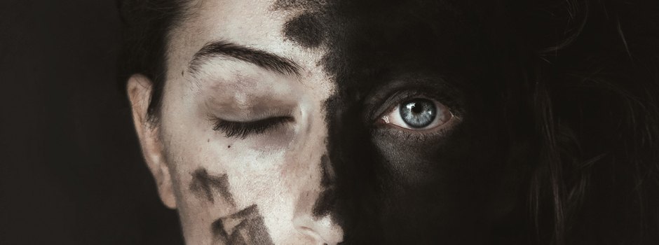 La obra interpreta las dos caras del mundo. Una oscura y destrozada por las guerras que mira al frente, aun con esperanza, con la mirada llena de dolor. La otra, algo manchada con el ojo cerrado porque no puede o no quiere ver lo que ocurre.